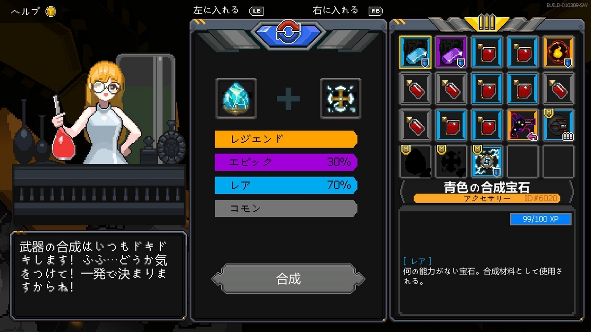 武器にはレアリティの概念があり、当然レアリティの高い武器ほど強いのですが、本作の面白い点として中間ポイントでできる「合成」があります。