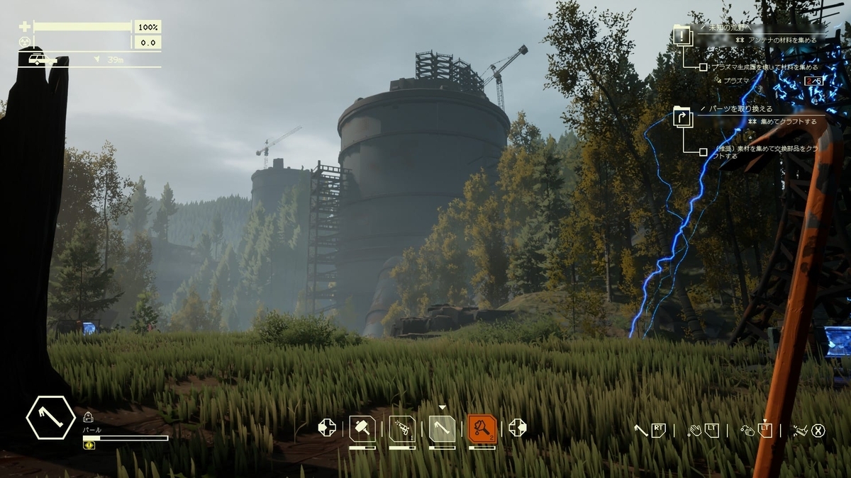 危険な敵対生物のいるエリアに侵入し、敵対生物や自然の脅威をかわしながらリスクを冒して資材を回収して車に積み込み、ガレージに生還して車の修理や強化を行う、というのが基本的な流れとなります。