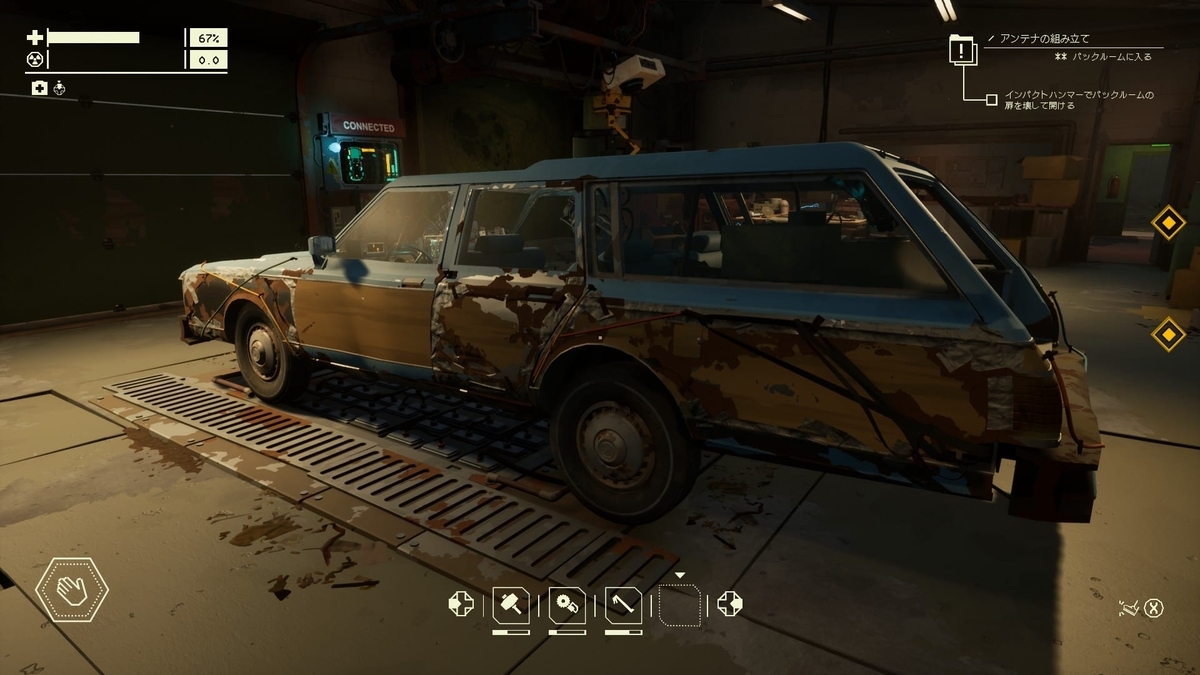 本作の魅力は緊張を強いられる危険地域のドライブと、無事にガレージに帰ってきて生還できたという安心感、また次のドライブに向かうための車の修理や強化、という一連のサイクルにあると思います。